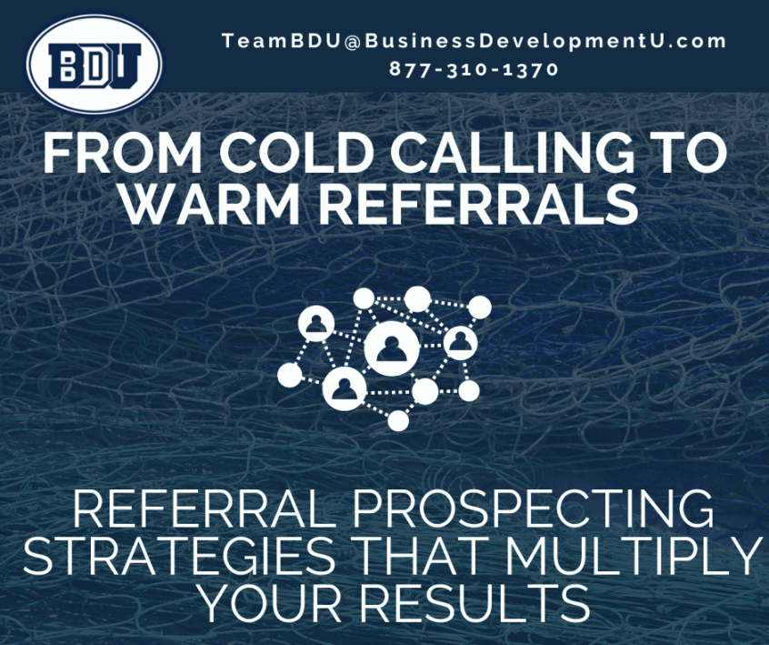 If you’ve been fishing with a pole for way too long, maybe it’s time to try a new approach. At BDU, we specialize in helping professionals create referral pipelines that fill themselves. You don’t have to love cold calling. You just need to know how to build strategic alliances and COIs that do the heavy lifting for you!